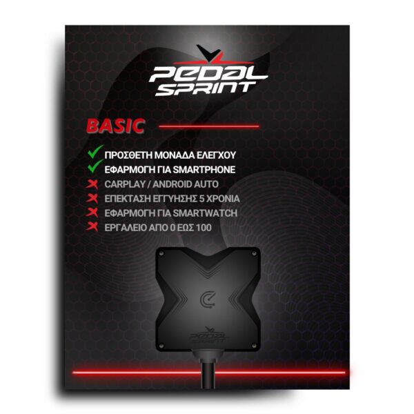 Το Pedal Sprint είναι μια ηλεκτρονική συσκευή που τοποθετείται μεταξύ του πεντάλ γκαζιού (ποτενσιόμετρο επιτάχυνσης) και της κεντρικής μονάδας ελέγχου του αυτοκινήτου (ECU). Απευθύνεται σε όλα τα σύγχρονα αυτοκίνητα με ηλεκτρονικό σύστημα διαχείρισης του γκαζιού. Η εφαρμογή αυτής της ηλεκτρονικής συσκευής στο γκάζι έχει ως στόχο να εξαλείψει την καθυστέρηση στην απόκριση του γκαζιού, προσφέροντας άμεση απόκριση στις εντολές του οδηγού. Οι σύγχρονοι κινητήρες λαμβάνουν τις εντολές για επιτάχυνση μέσω ενός ποτενσιόμετρου, το οποίο μεταφέρει την εντολή από το πόδι του οδηγού στην ηλεκτρονική μονάδα ελέγχου (ηλεκτρονικό γκάζι). Το Pedal Sprint αναλαμβάνει να επεξεργαστεί αυτά τα σήματα, μετατρέποντας τα για να μειώσει τον χρόνο απόκρισης του γκαζιού. Αυτό έχει ως αποτέλεσμα βελτιωμένη επιτάχυνση και αποφεύγει προβλήματα όπως η δυσκολία στο ξεκίνημα, στις ανηφορικές κλίσεις, στις αλλαγές ταχυτήτων, και στις προσπεράσεις. Η εγκατάσταση του Pedal Sprint είναι εύκολη (plug n play) και δεν επηρεάζει τα υπόλοιπα ηλεκτρονικά συστήματα του αυτοκινήτου, όπως το σύστημα ψεκασμού, η ανάφλεξη, το ABS, κ.ά. Ο σχεδιασμός του επιτρέπει την τοποθέτηση χωρίς επεμβάσεις στα κυκλώματα, και τα αποτελέσματα περιλαμβάνουν βελτιωμένη επιτάχυνση και ασφαλέστερη οδήγηση.
